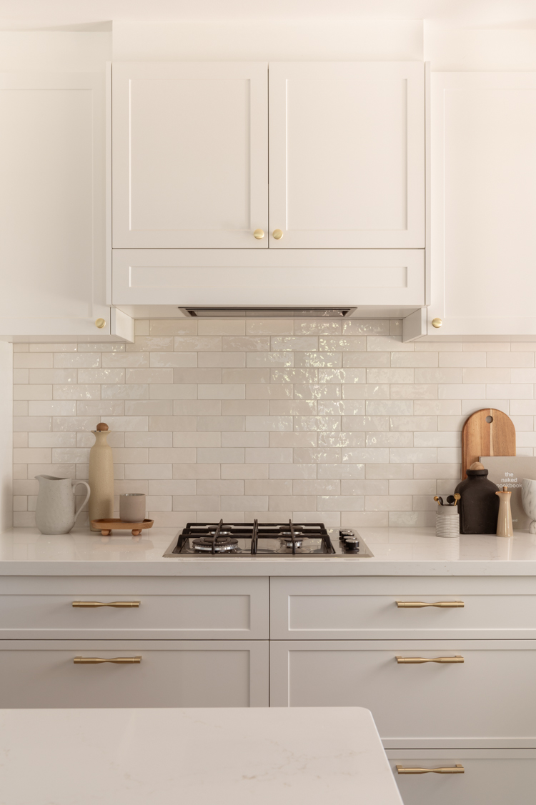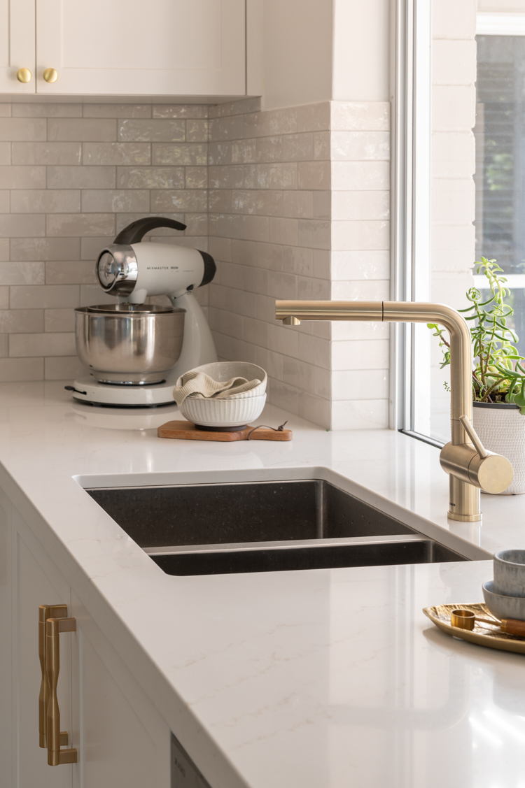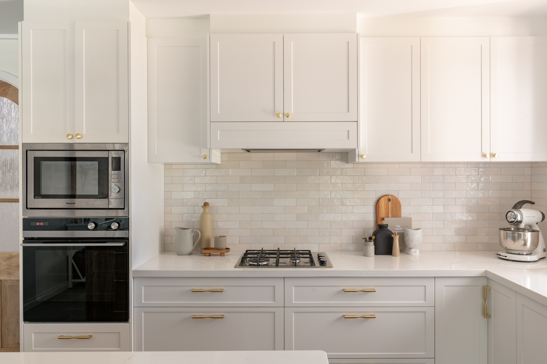 Caesarstone Aterra Blanca was chosen by our client for its clean, luminous surface and soft veining. This high-quality mineral benchtop is incredibly durable and made for busy kitchens, such as this family who needed a functional space for regular meal prep, baking and entertaining. It is resistant to heat, stains and scratches, making it the perfect white benchtop for a kitchen that is built to last. To complete the space, a glossy white splashback was chosen to complement the stone and open the space by enhancing natural light reflection.